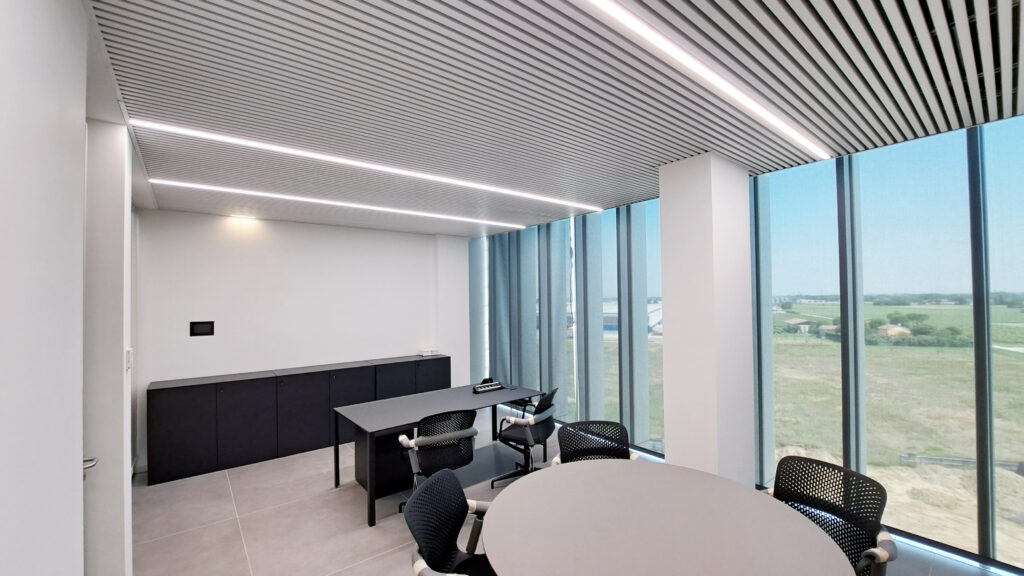 Sistema modulare di profili in estruso di alluminio mono e bi-emissione 30X30 mm, per installazione ad incasso, soffitto e sospensione, con sorgenti lineari led ed alimentatori elettronici 230/240V. La sue dimensioni lo rendono idoneo per installazione su soffitti radianti mediante opportuna staffa. Finitura verniciata. Schermi diffondenti in policarbonato opalino e testate di chiusura laterali con sistema Light Proof. Grado di protezione IP20/IP40.